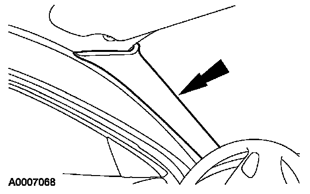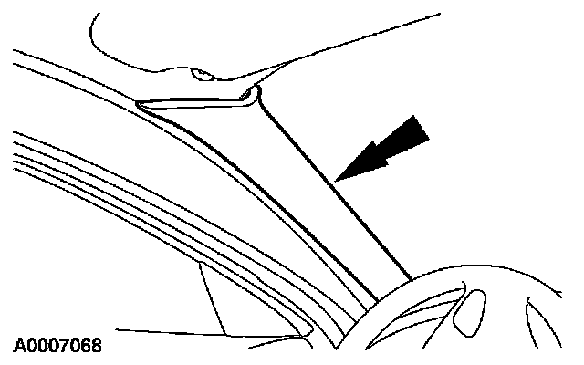 - Make sure that the urethane adhesive does not interfere with the installation of the windshield side garnish moulding and headliner.