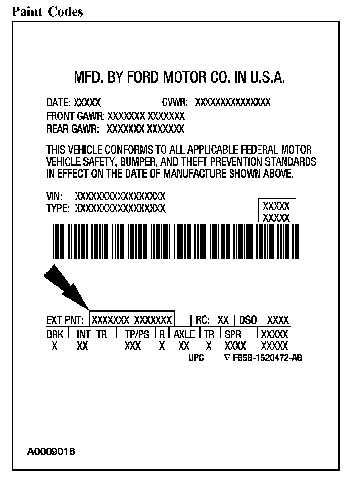 Paint codes may be listed as a two-part code. The first set of characters listed indicate the vehicle primary color code. The second set of characters (if applicable) indicate the accent or roof color code. All colors are base coat/clear coat.