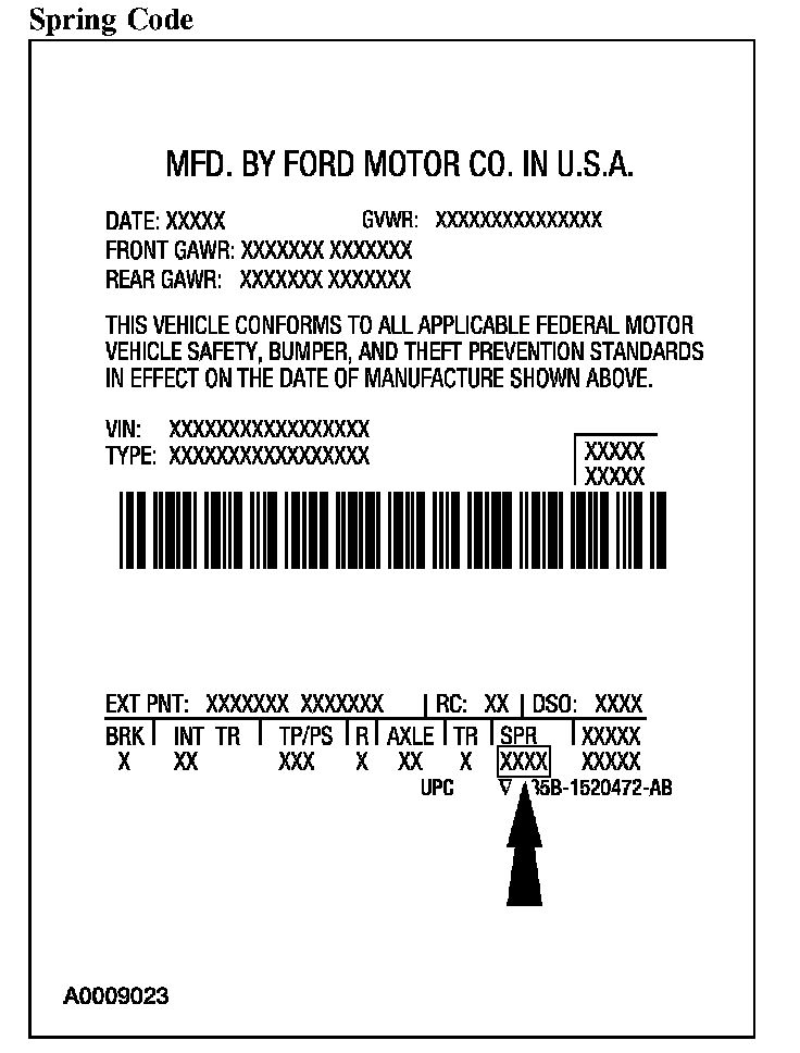 Spring codes are listed as a two-part code. The first set of characters listed identify the front springs. The second set of characters listed identify the rear springs.