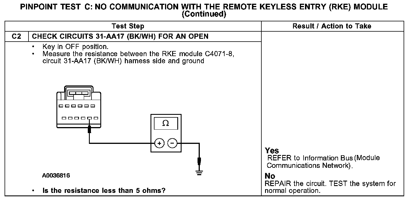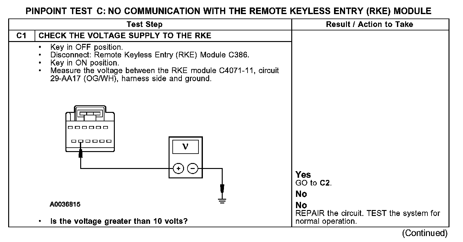 Test C: No Communication With The Remote Keyless Entry (RKE) Module