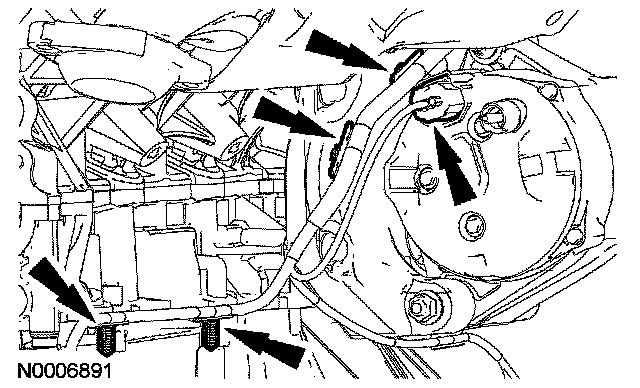 Connect the engine wiring harness retainers to the engine appearance cover support brackets.