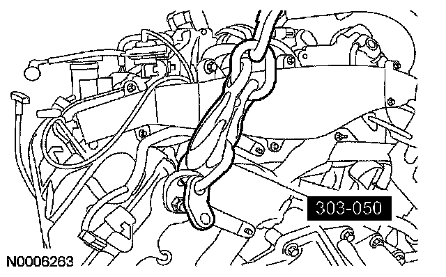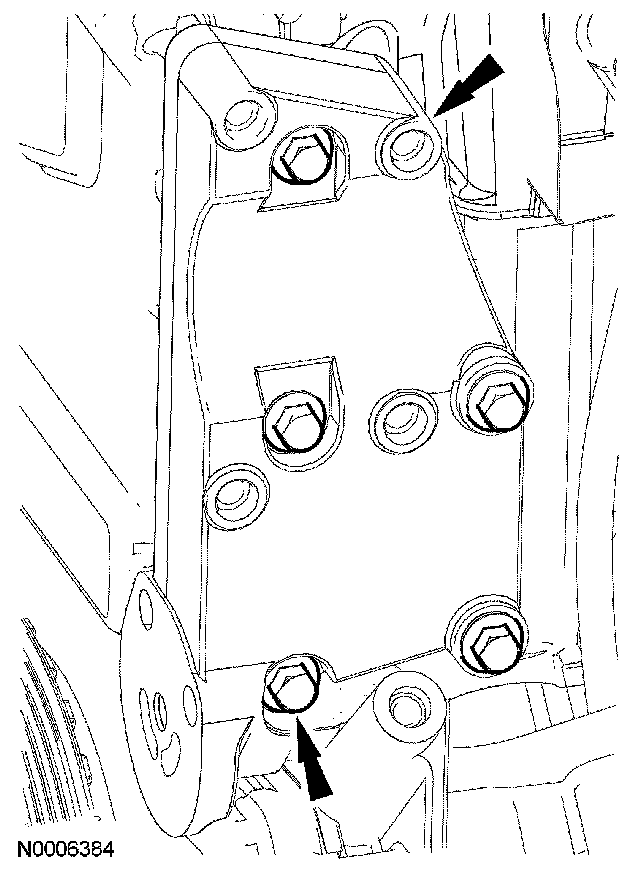 119. Install the LH engine mount bracket, stud bolt and 3 bolts.