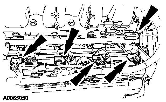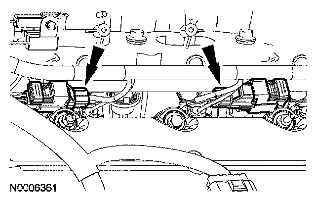 Connect the 8 fuel injectors and the 2 radio interference capacitor electrical connectors