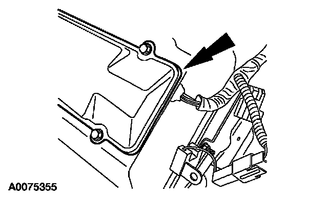 Lift up the wire harness and apply a 12.7 mm (0.5 inch) bead of silicone sealer in the notch of the valve cover.