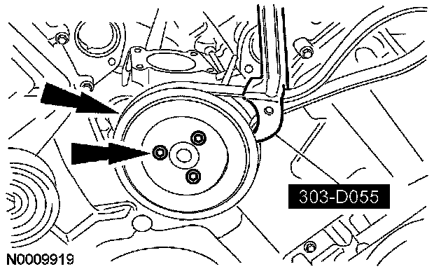 112. Using the special tool, install the coolant pump pulley and 3 bolts.