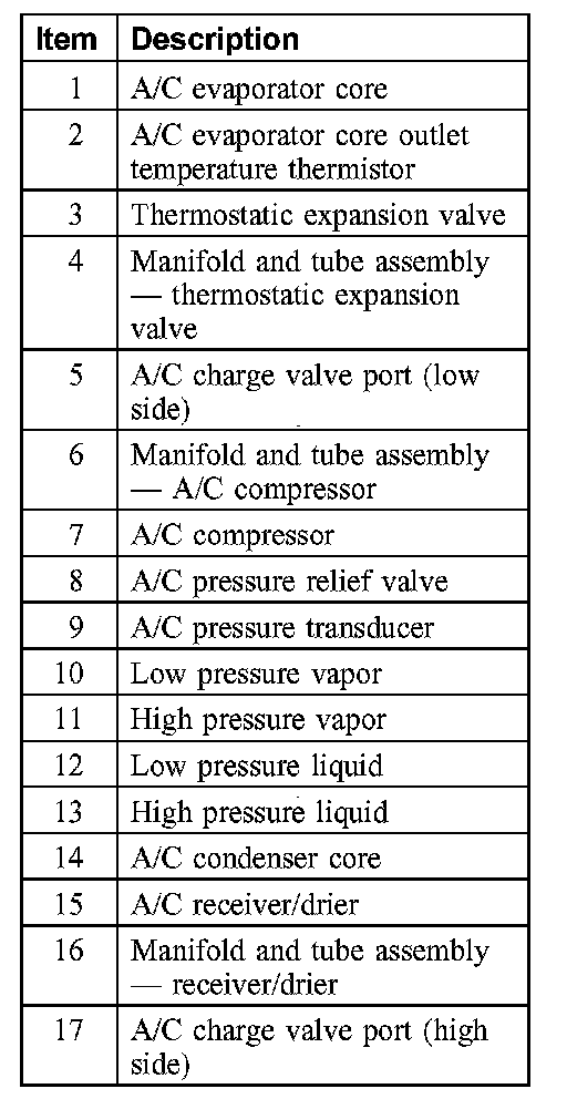 A thermistor which monitors the temperature of the air that has passed through the evaporator core controls A/C clutch cycling. If the temperature of the evaporator core discharge air is low enough to cause the condensed water vapor to freeze, the A/C clutch is disengaged by the vehicle powertrain control module (PCM).