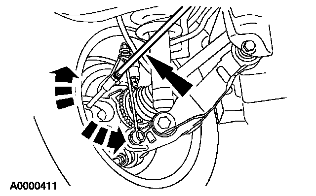 4. NOTE: Do not allow the steering gear bellows to twist when the front wheel spindle inner tie-rod is rotated.
