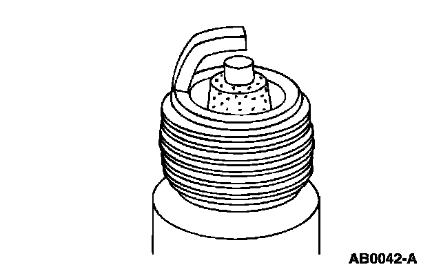 ^ Check for wet, black deposits on the insulator shell bore electrodes, caused by excessive oil entering the combustion chamber through worn rings and pistons, excessive valve-to-guide clearance or worn or loose bearings.