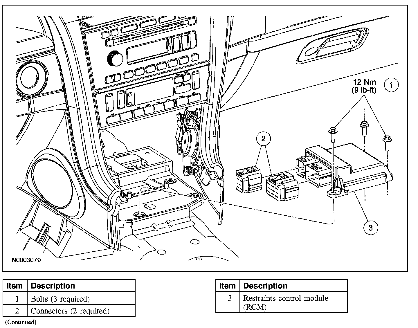 - When installing a new restraints control module (RCM), always make sure the correct RCM is being installed. If an incorrect RCM is installed, erroneous DTCs will result.