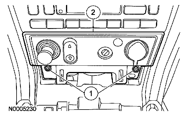 5. NOTE: The restraints control module is located on top of the center transmission tunnel under the instrument panel.