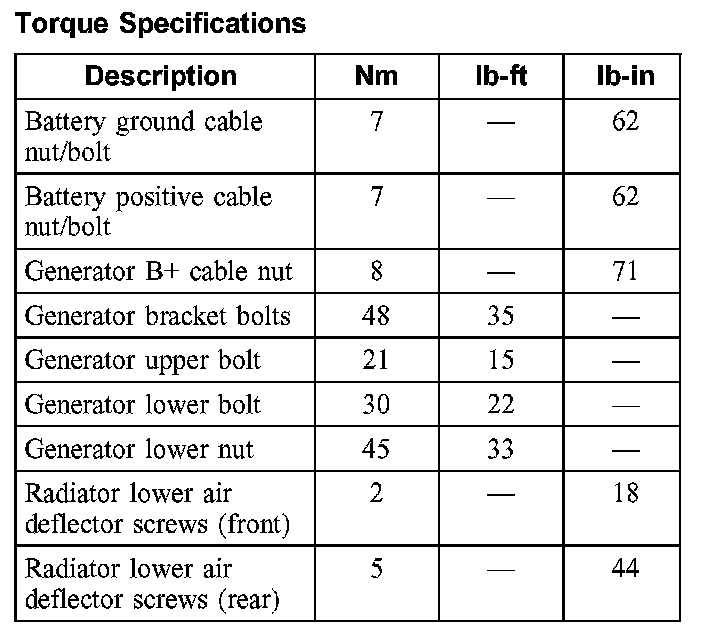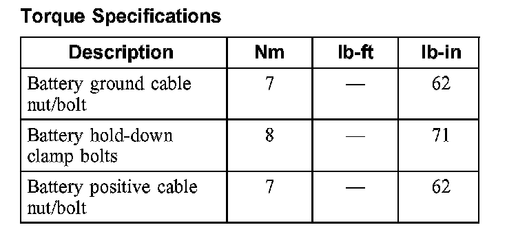 Torque Specifications: