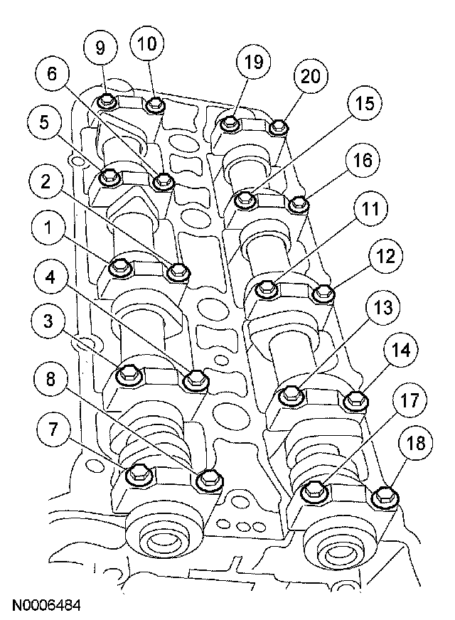 CAUTION: The camshaft bearing caps are positional and must be installed in their original locations and orientation or engine damage can occur.