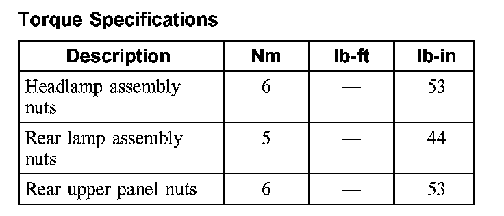 Torque Specifications: