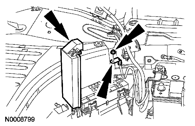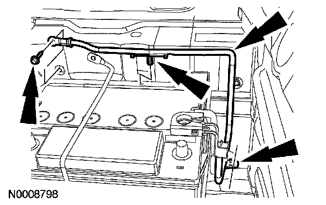 17. Remove the engine compartment positive and ground cable assembly.