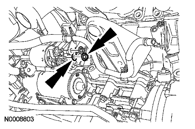 11. Remove the starter ground cable nut and cable end.