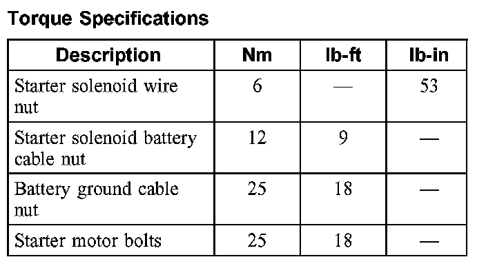 Starter Motor: Specifications