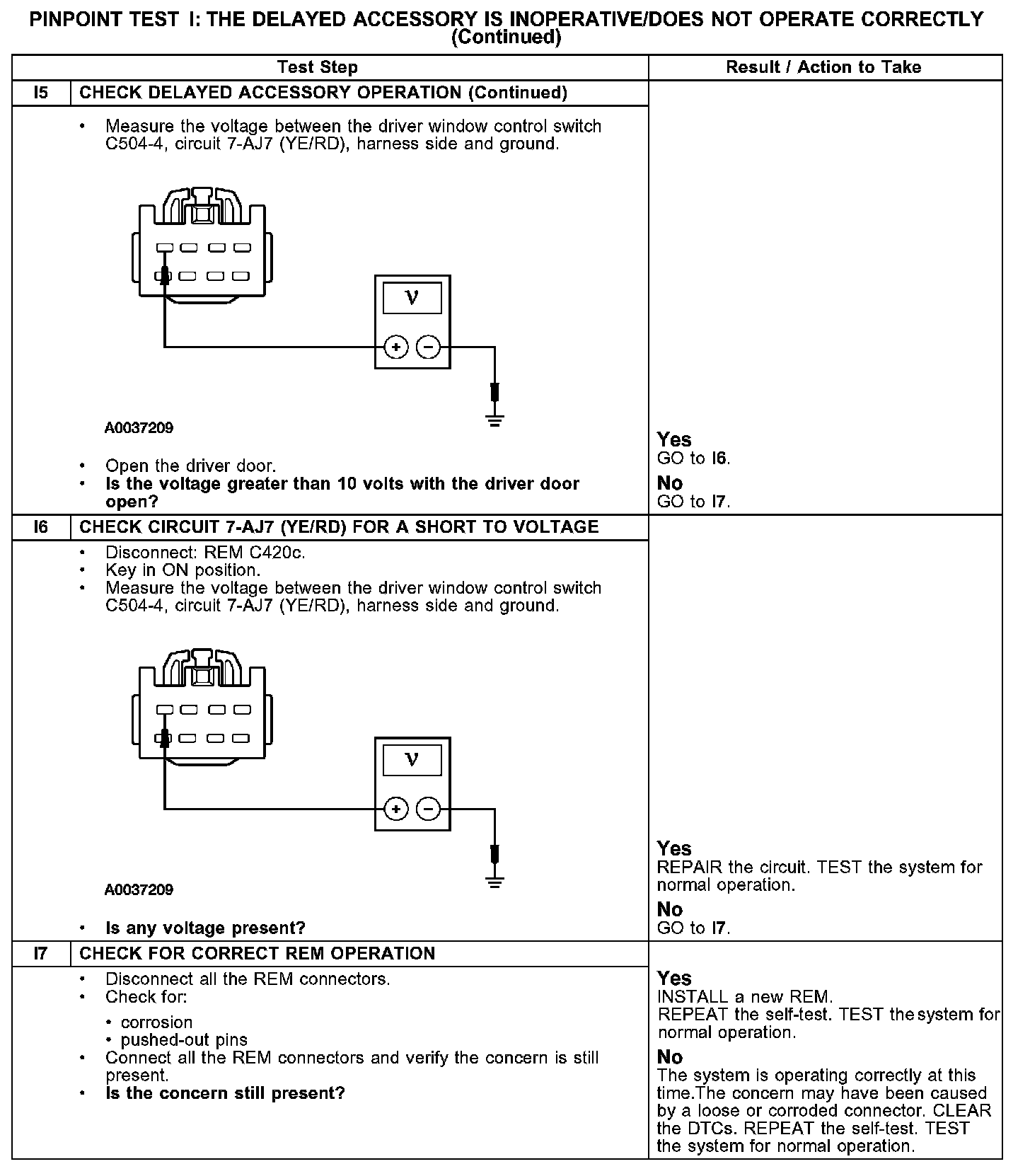 - circuit 7-AJ7 (YE/RD) open, short to ground, or short to voltage