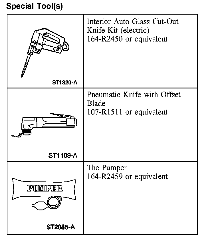 NOTE: Lubricate the existing urethane adhesive with water to aid the special tool while cutting.