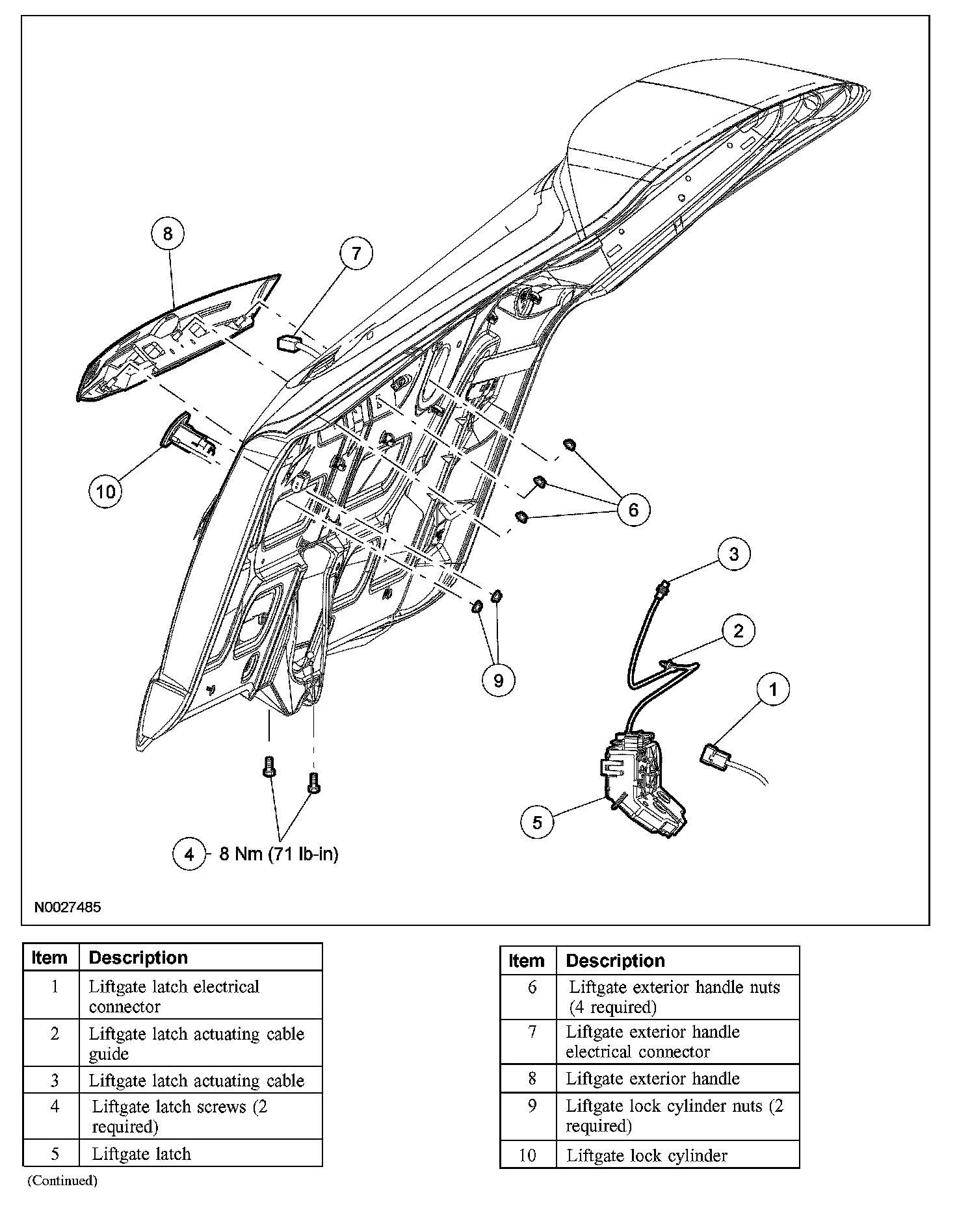 LIFTGATE HANDLE, LOCK AND LATCH - EXPLODED VIEW