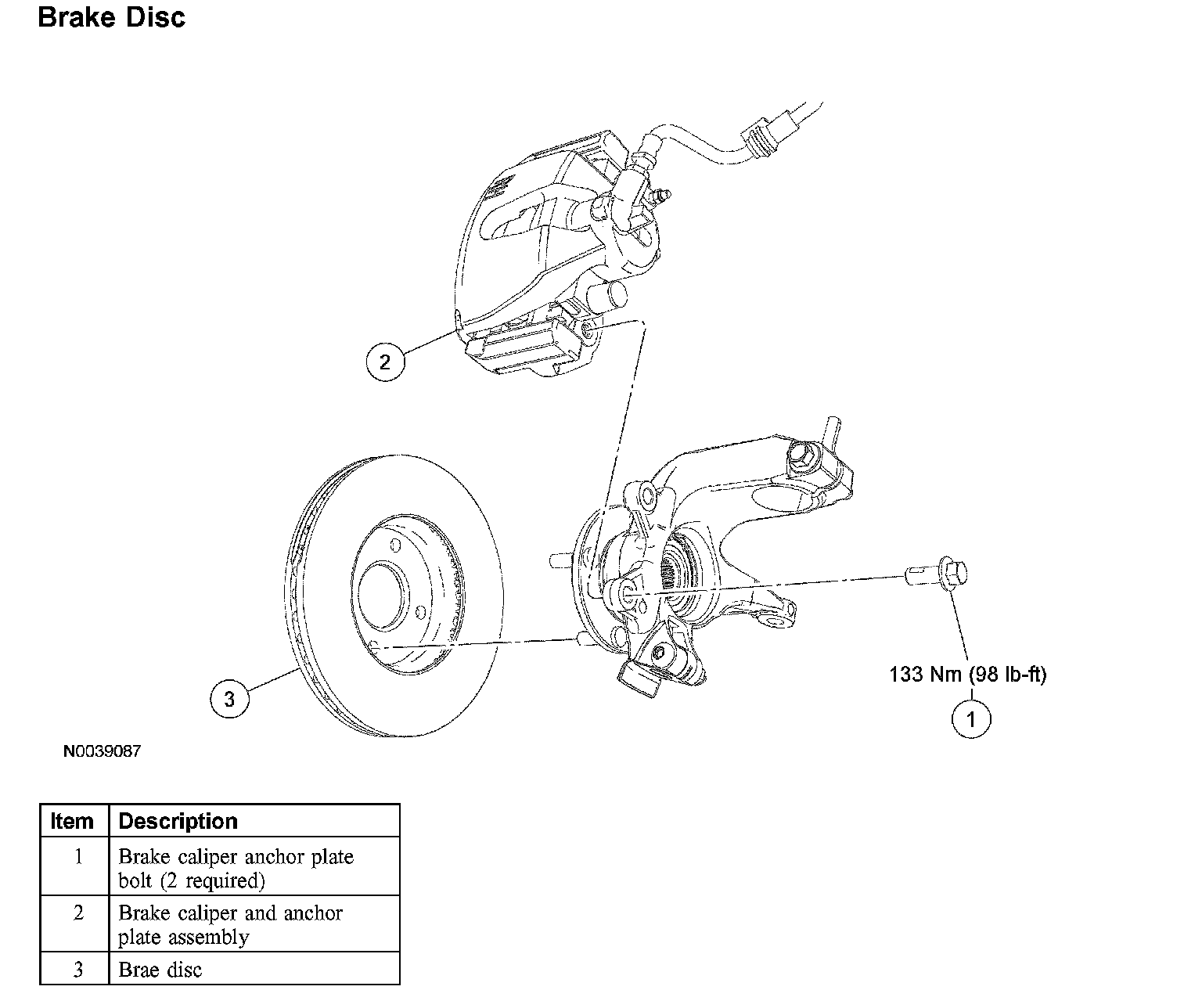 ^ Support the brake caliper and anchor plate assembly mechanic's wire.