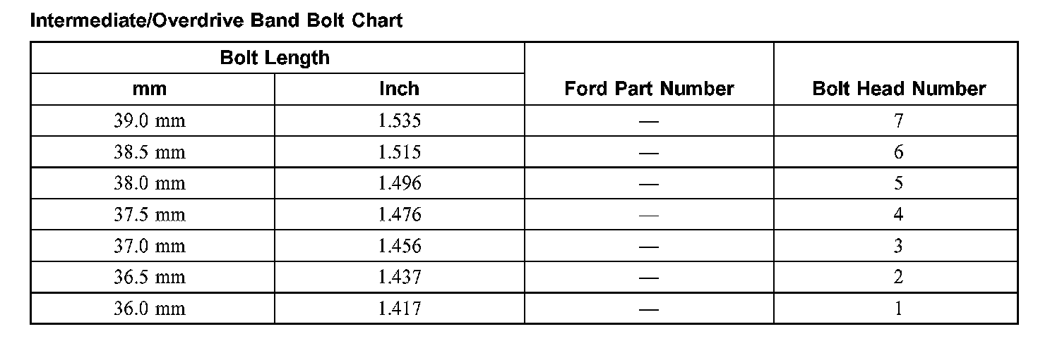 Intermediate/Overdrive Band Bolt Chart