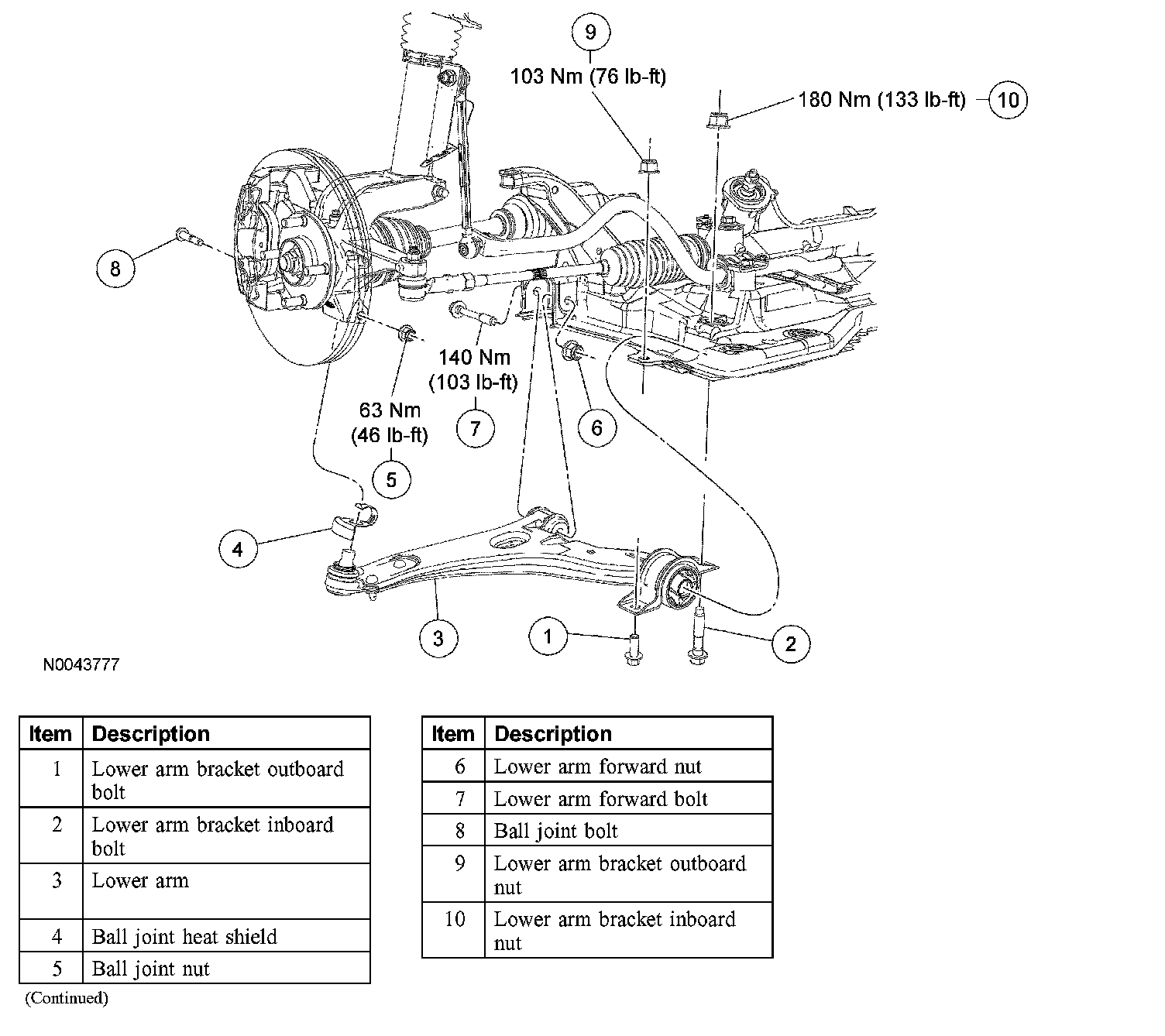 Tighten the lower arm outboard bracket nut to 103 Nm (76 ft. lbs.).