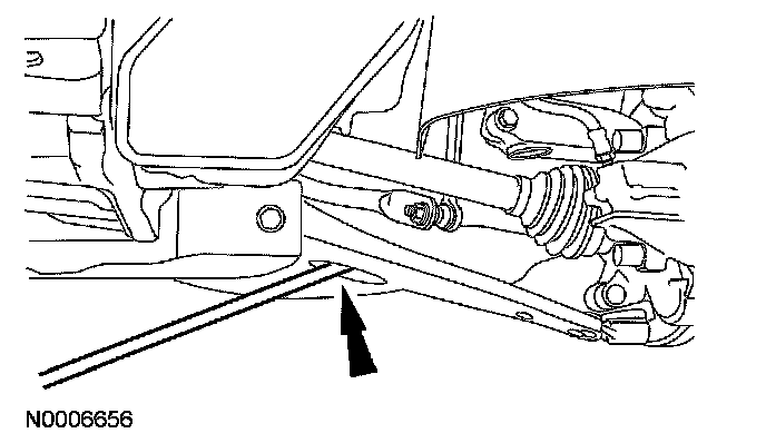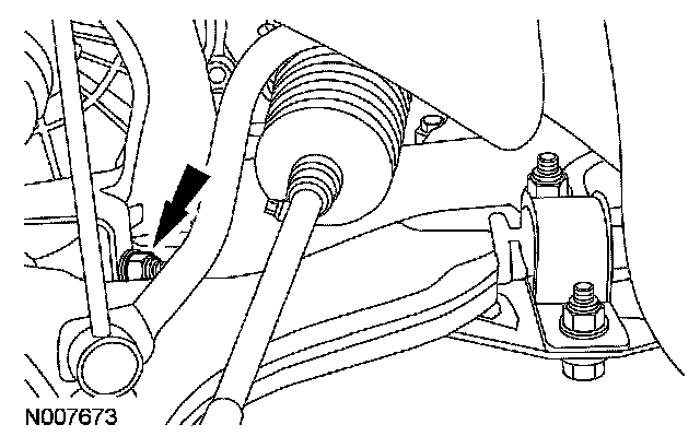 5. CAUTION: Tighten the lower arm outboard bracket nut and bolt with the suspension at curb height.