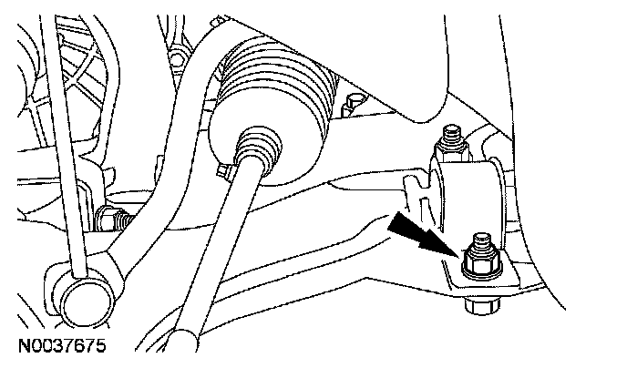 4. CAUTION: Tighten the lower arm inboard bracket nut and bolt with the suspension at curb height.