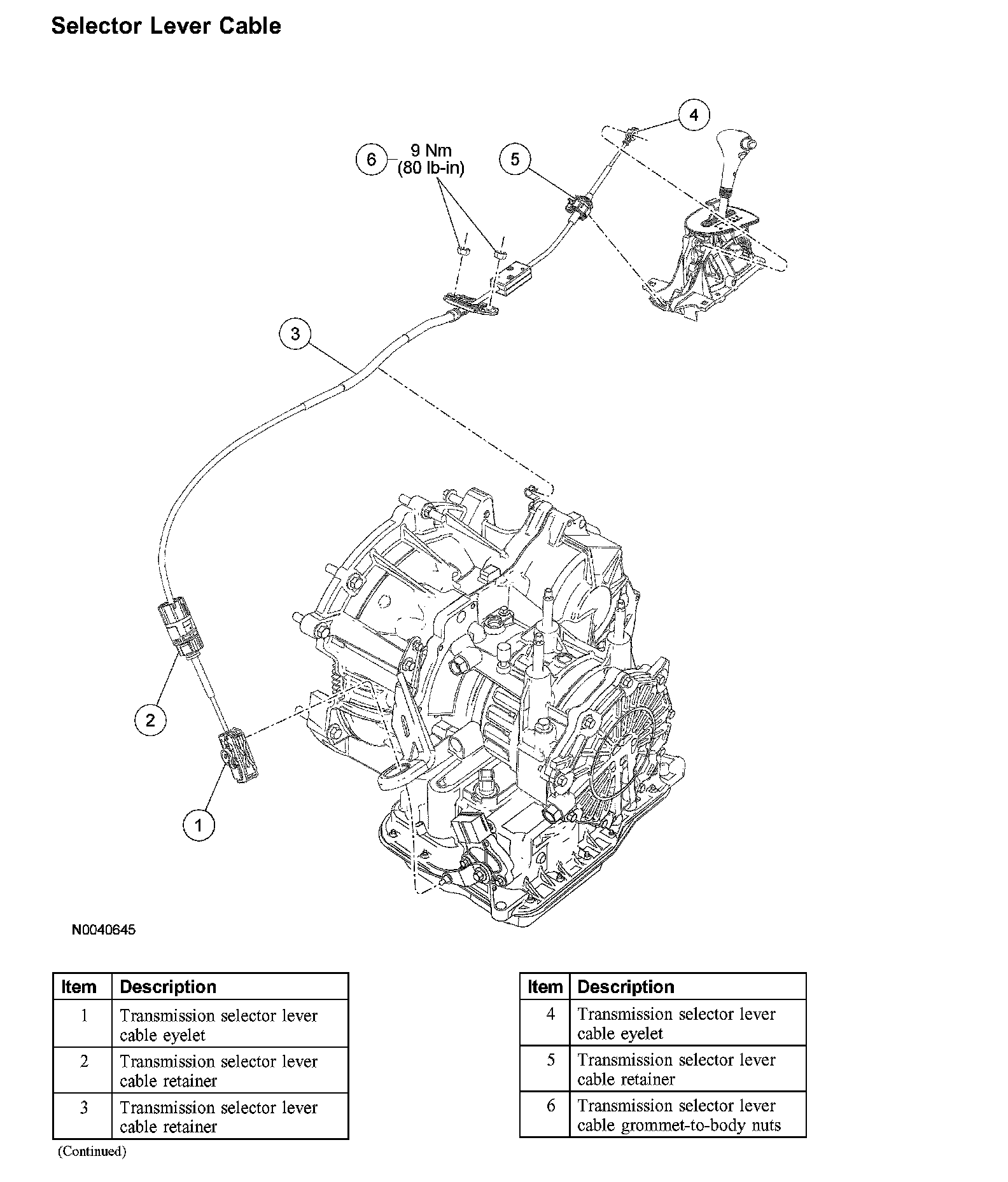 9. Disconnect the selector lever cable from the selector lever bracket and manual control lever.