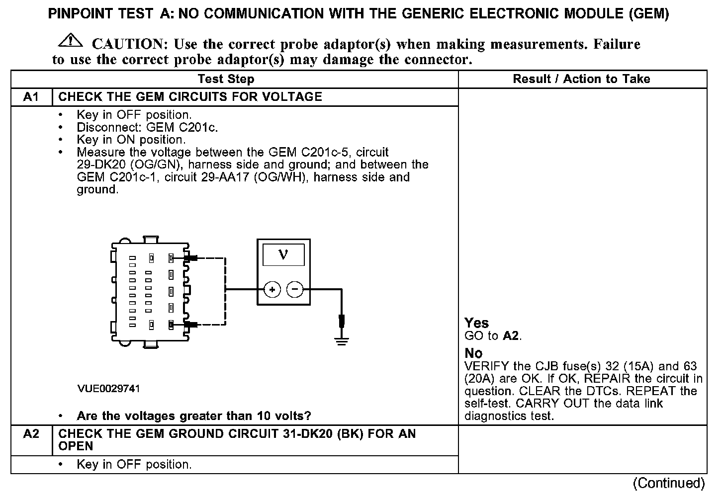 PINPOINT TEST A: NO COMMUNICATION WITH THE GENERIC ELECTRONIC MODULE (GEM)A1-A2:
