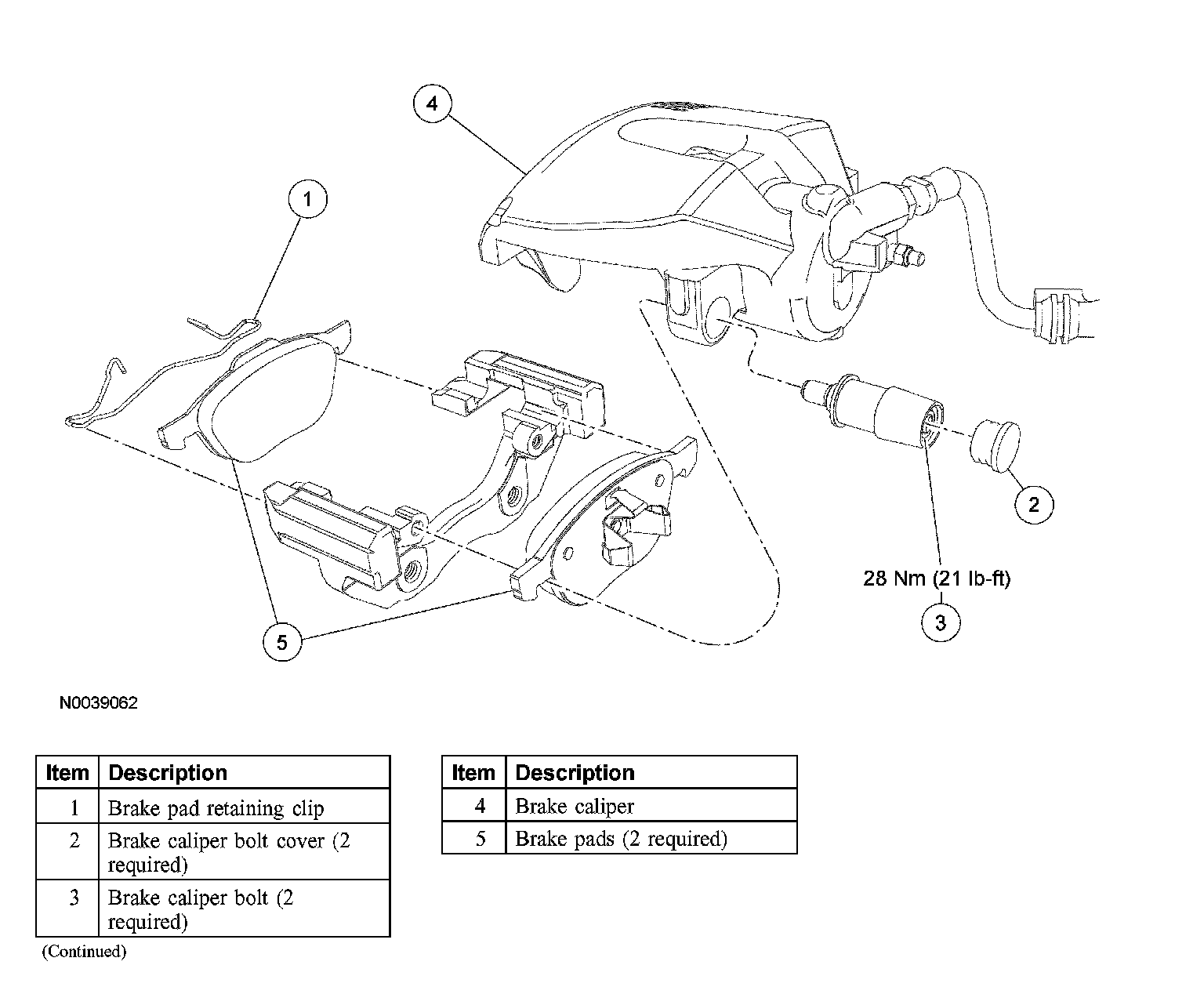 7. CAUTION: If the caliper piston is retracted into the housing, brake fluid may be displaced from the master cylinder.