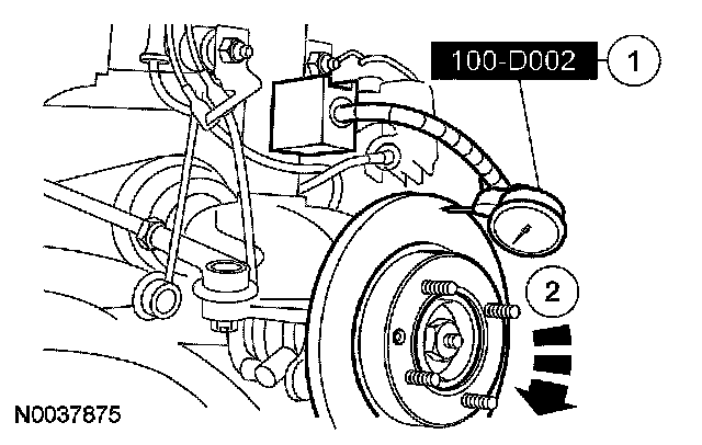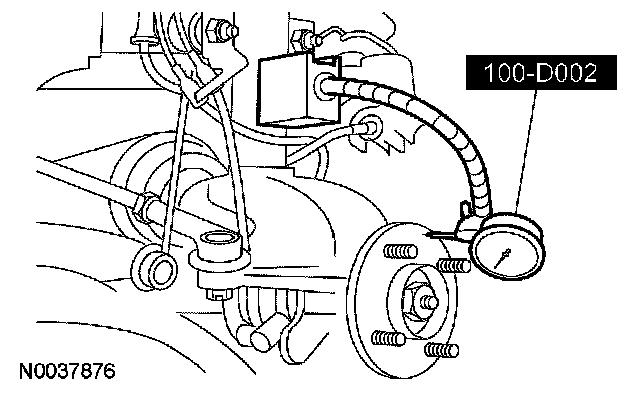 5. NOTE: If the runout is outside the specification, check the wheel hub face runout.