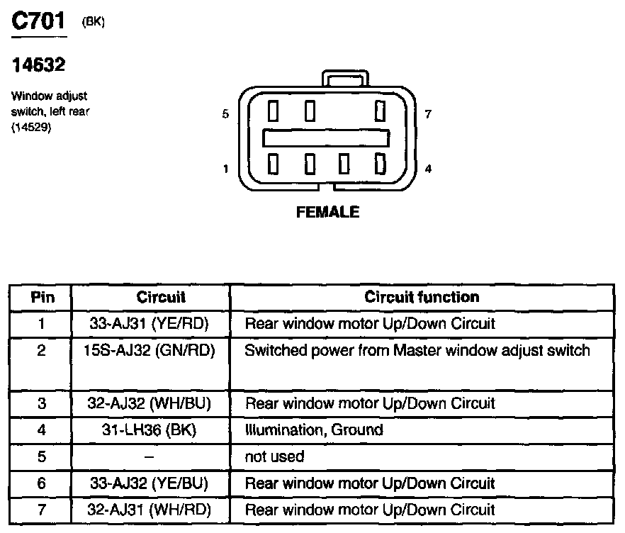 Window Adjust Switch, Left Rear