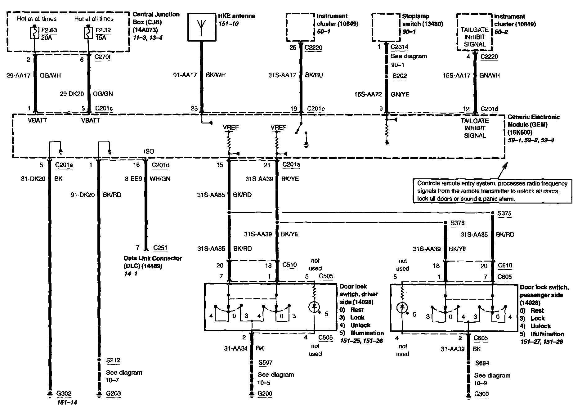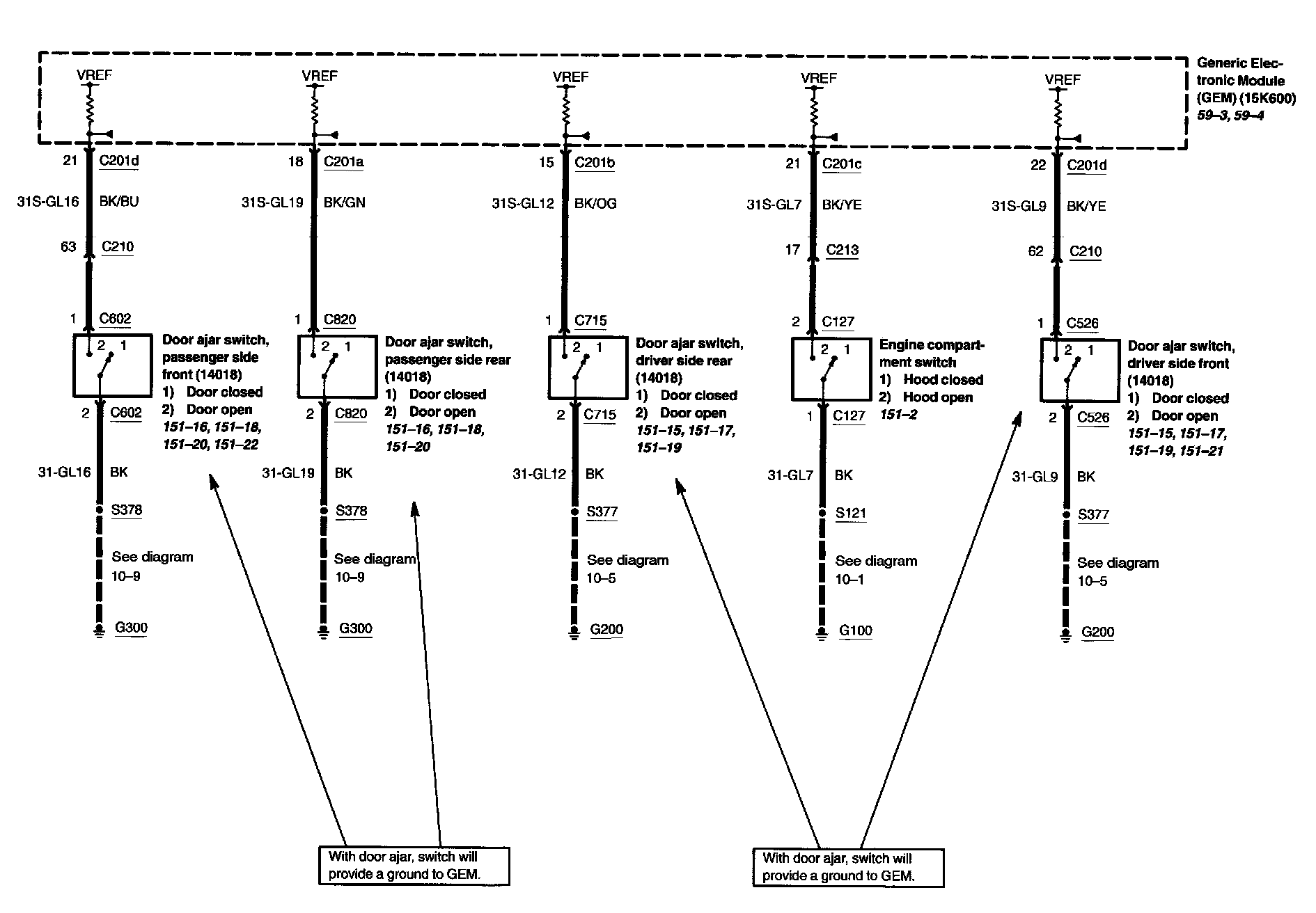 Locations: Location Views (reference numbers starting with 151-) referred to within these diagrams can be found at Component Location Views. Component Location Views