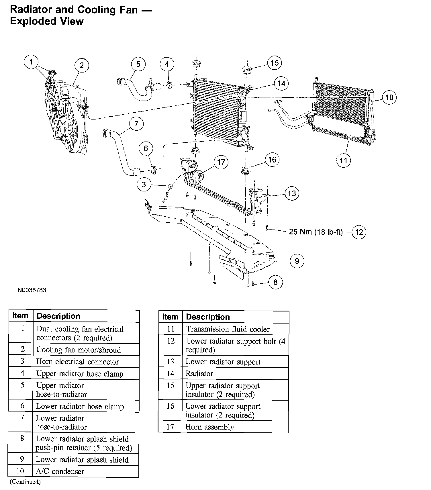 Radiator and Cooling Fan Exploded View: