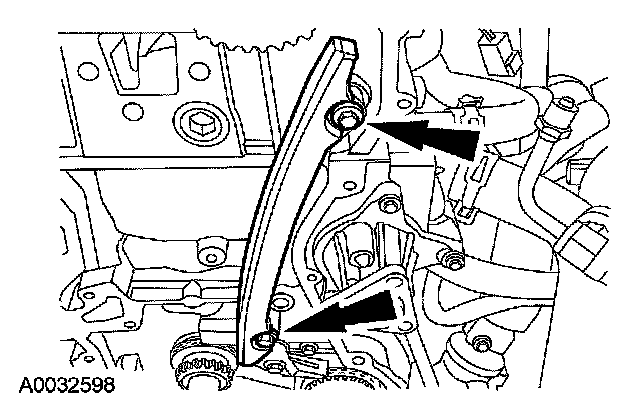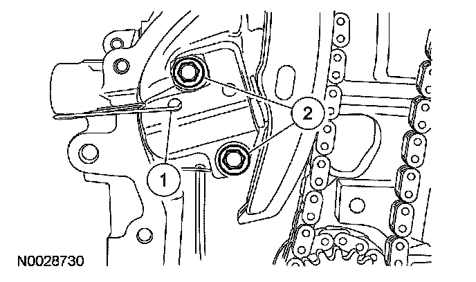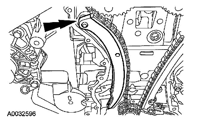 1. Compress the timing chain tensioner and insert a paper clip into the hole.