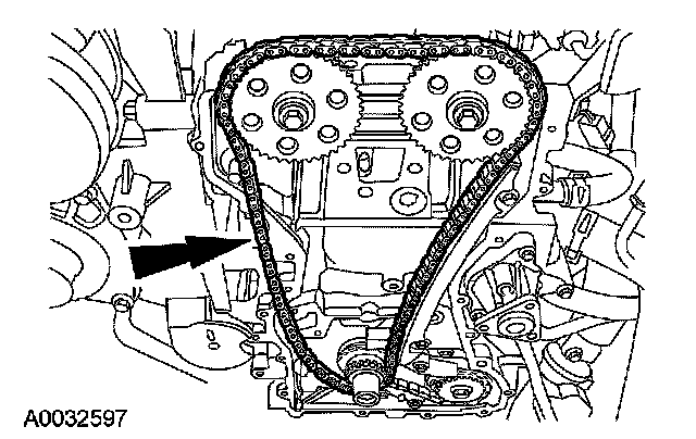 3. If removed, install the camshaft sprockets and the bolts. Do not tighten the bolts at this time.