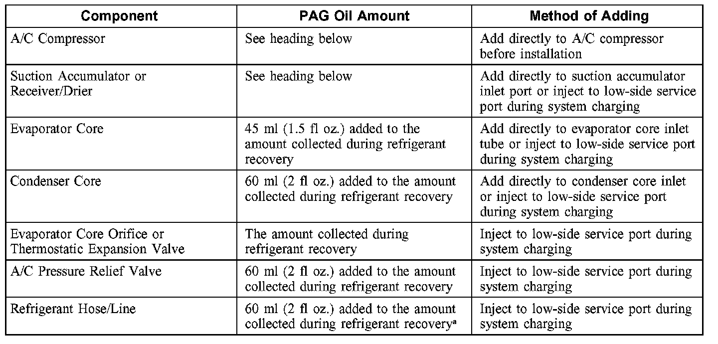 Refrigerant Oil Adding for New Suction Accumulator or Receiver/Drier Installation