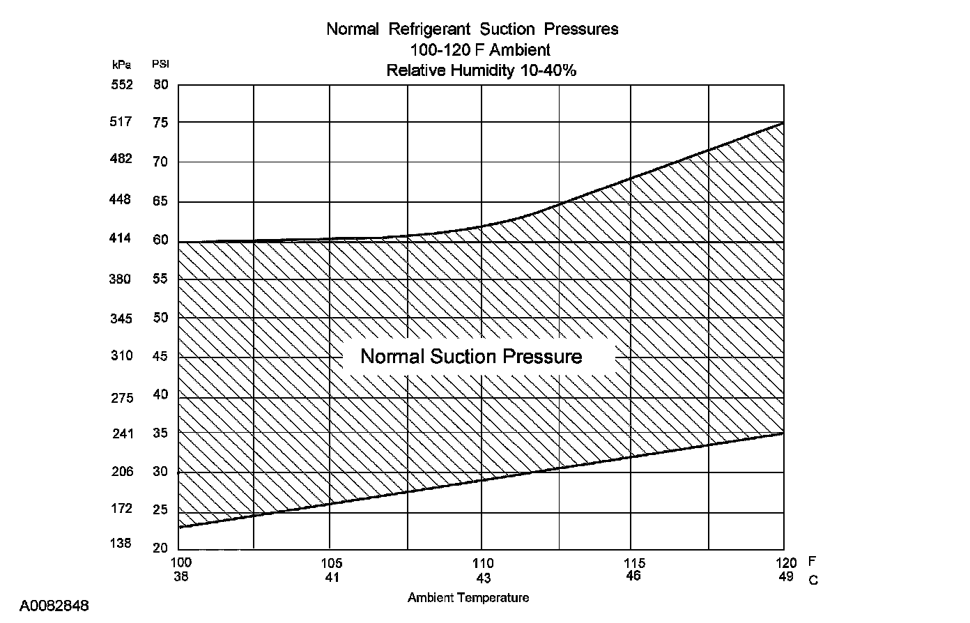 10. Determine if the suction pressure falls between normal operating limits using the Normal Refrigerant Suction Pressures chart.