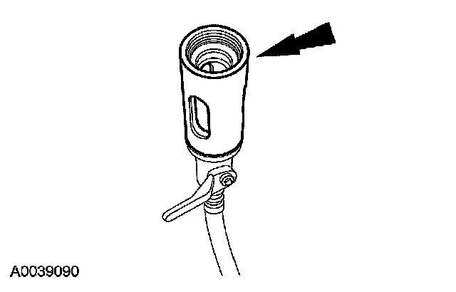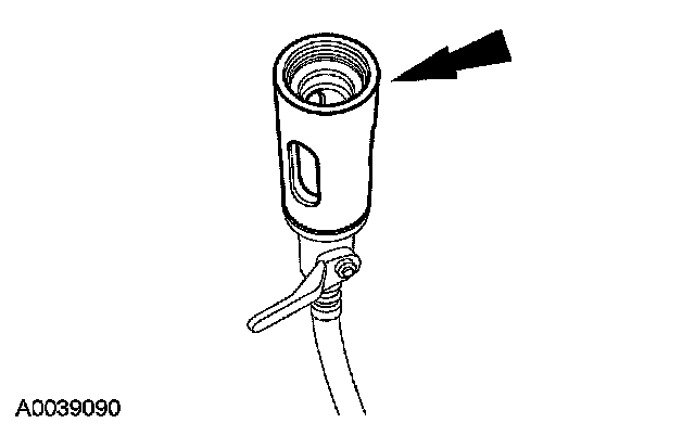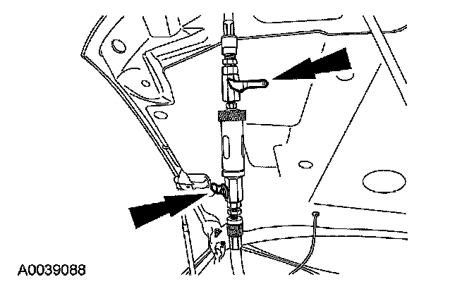 8. Remove the fluorescent dye injector from the low-pressure service gauge port valve and the R-134a A/C refrigerant service center or manifold gauge set.