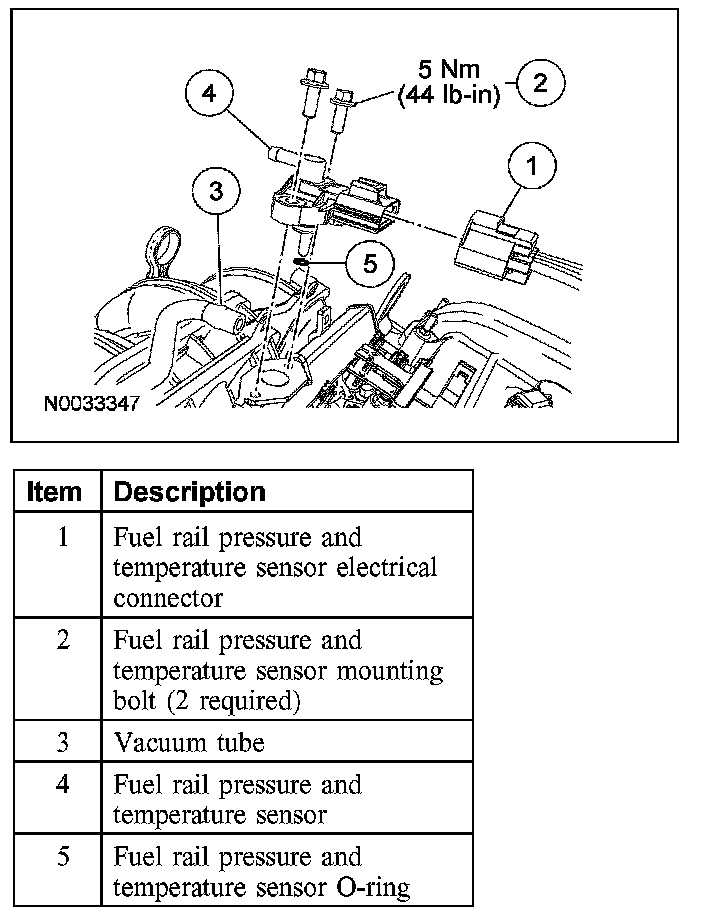 5. CAUTION: Be sure that the fuel rail pressure and temperature sensor is correctly aligned when re-installing to avoid damage to the O-ring.