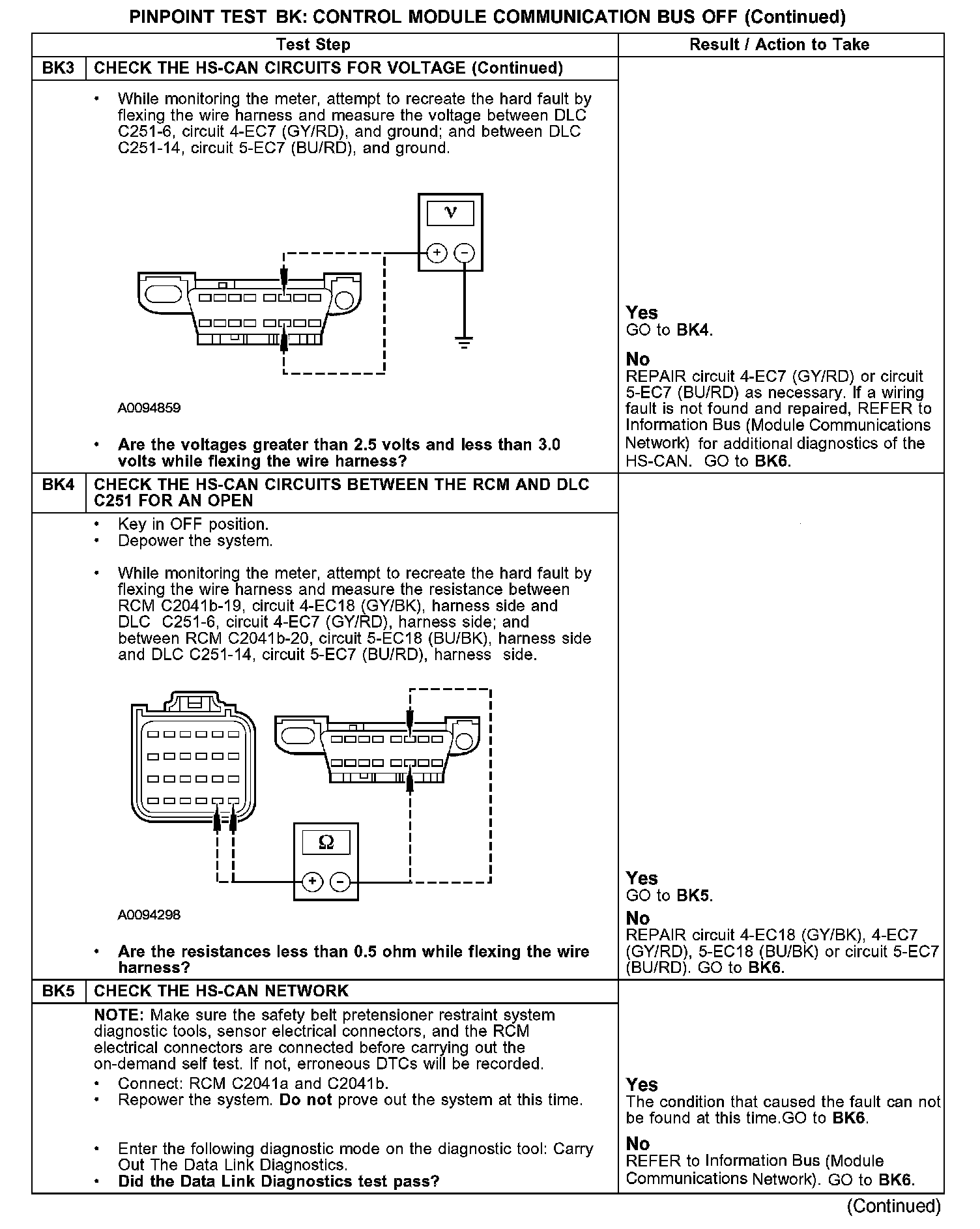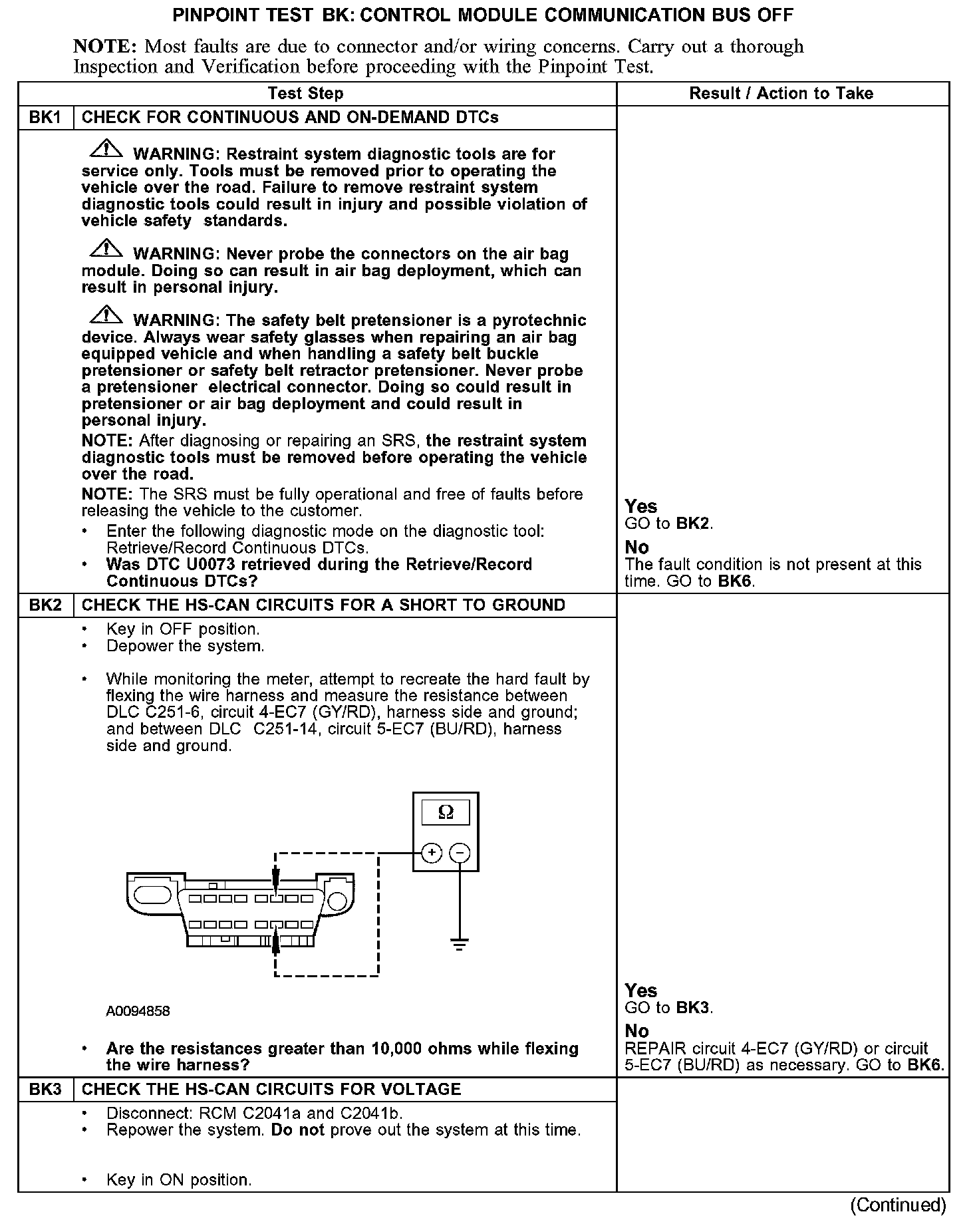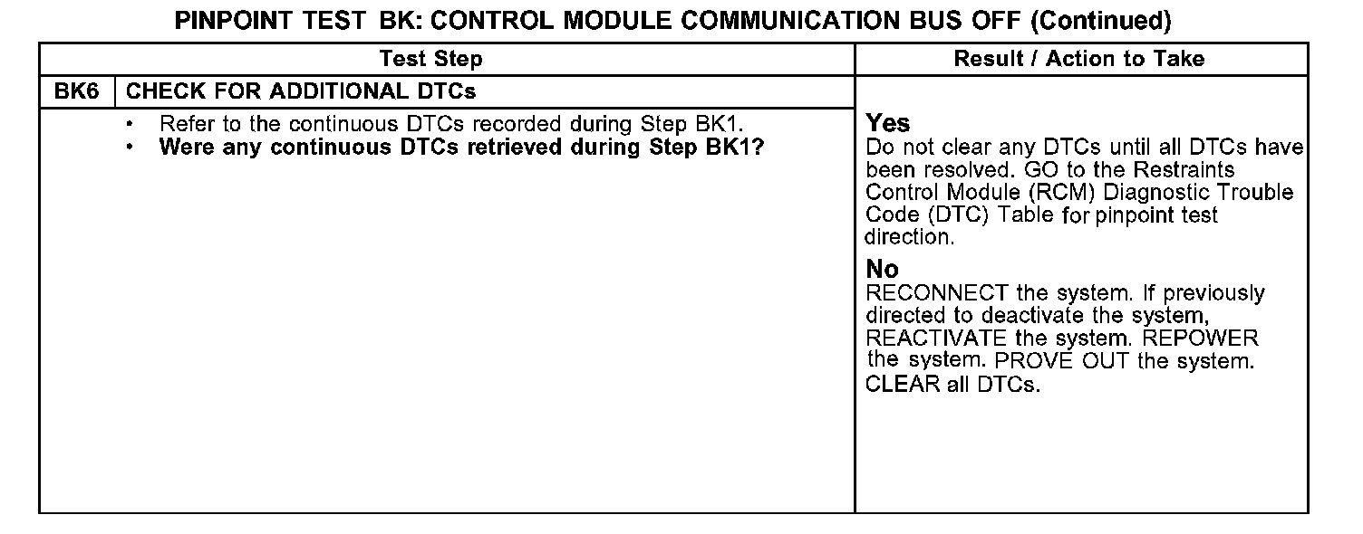 PINPOINT TEST BK: DTC U0073 - CONTROL MODULE COMMUNICATION BUS OFFBK1-BK3: