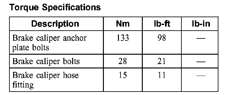 Torque Specifications, Front