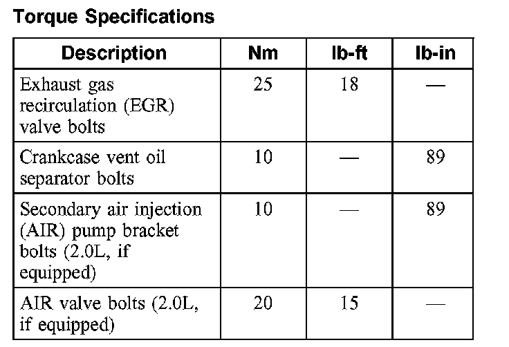 Torque Specifications: