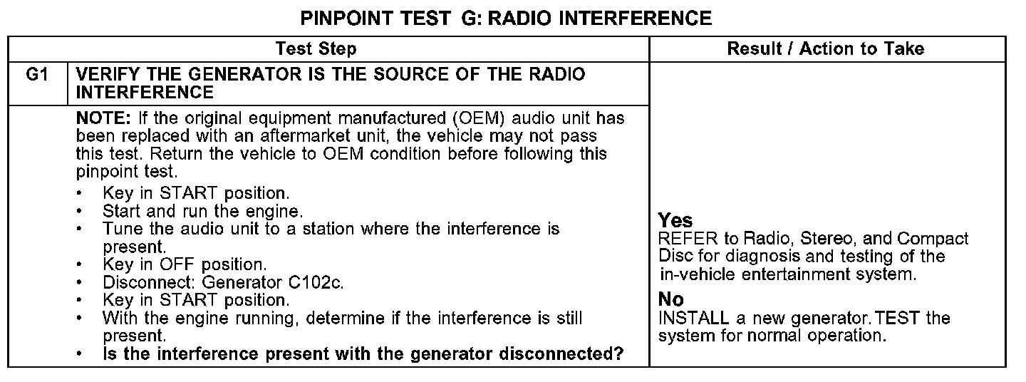 PINPOINT TEST G: RADIO INTERFERENCEG1: