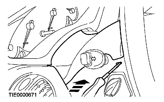 3. Using a thin bladed screwdriver, release the 2 clips and remove the upper steering column shroud.