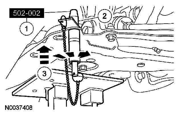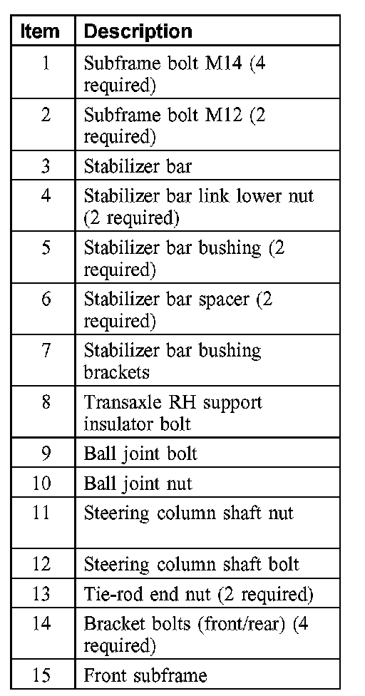8. CAUTION: While tightening the subframe retaining bolts, make sure the subframe does not move.