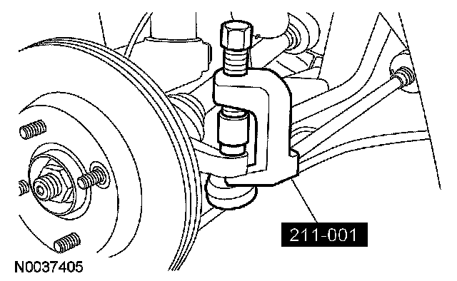 9. After separating the lower control arm from the wheel knuckle, immediately install the special tool over the ball stud before releasing the lower control arm and knuckle into rest positions.