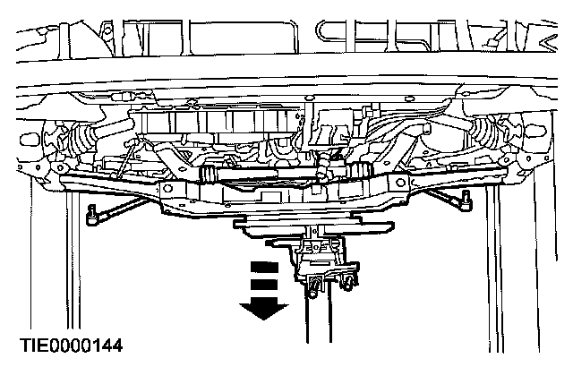 11. Using a suitable transmission jack, support the subframe.