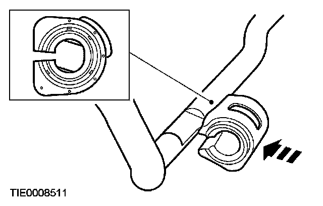 1. CAUTION: The stabilizer bar bushings must be positioned correctly on the flats of the stabilizer bar.